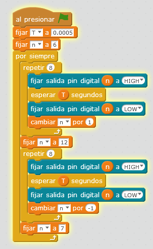 Hemos puesto un tiempo T pequeño para que dar una sensación de movimiento