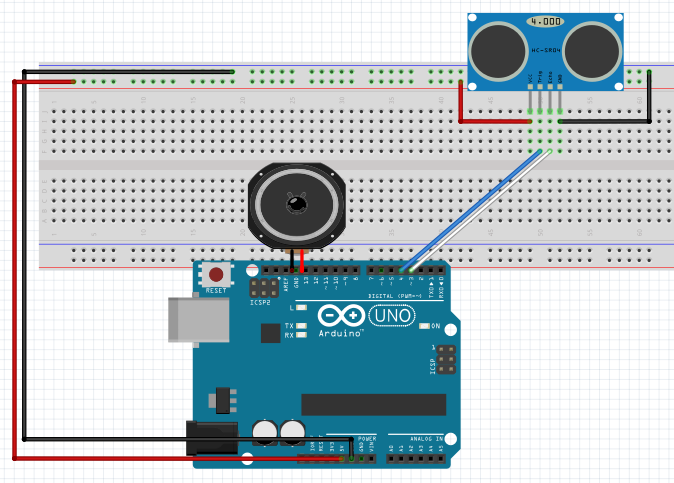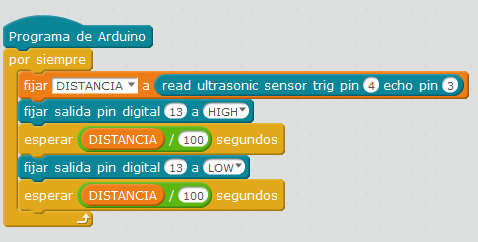 Realizar un programa que realice pulsos el altavoz en función de la distancia al objeto. Cuanto más cerca mayor es la frecuencia de los pulsos