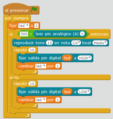 Proponemos que cuando se pulse el pulsador, se enciendan las luces y toque un tono